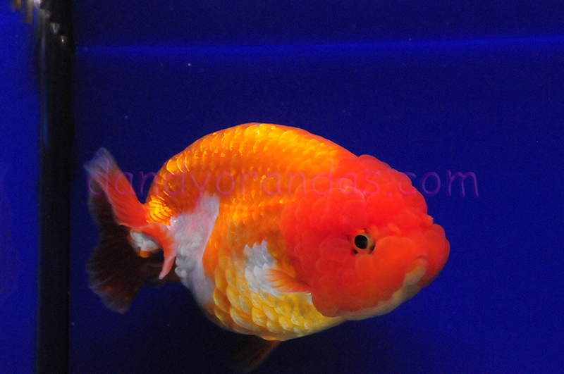 Very stocky body on this large ranchu with cute face.  Active fish with nice motion and balance.