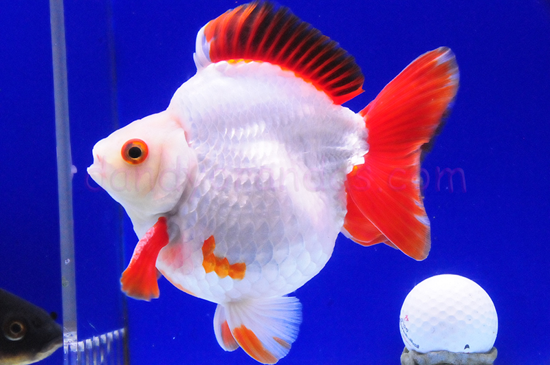 Brilliant metallic finish on this large select ryukin.  Fantastic overall fish in large size.